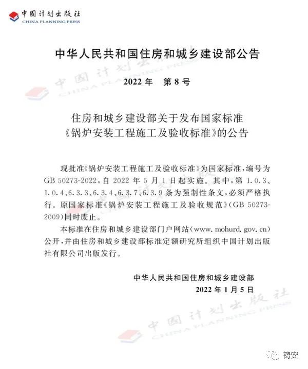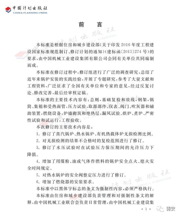 《锅炉安装工程施工及验收标准》已发布,
