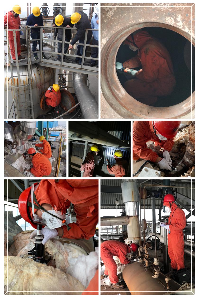 春节后,承压应急队员们连续奔波在浙江新中港清洁能源股份有限公司、浙江诸暨八方热电有限责任公司、绍兴凤登环保有限公司、浙江化工院科技有限公司,为医药化工企业做好特种设备检验检测,他们爬上60米高的热电锅炉,爬进洞口窄小的炉膛、容器,有安全的责任在心里,他们坚定:服务好疫情防控、复工复产,永远冲在前!