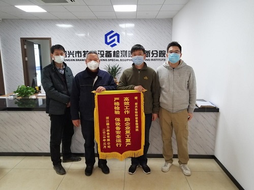 3月31日下午,浙江德力装备有限公司特地赶到嵊新分院表示感谢,并送上了“高效工作,助企业复工复产;严格检验,保设备安全运行”的锦旗。
