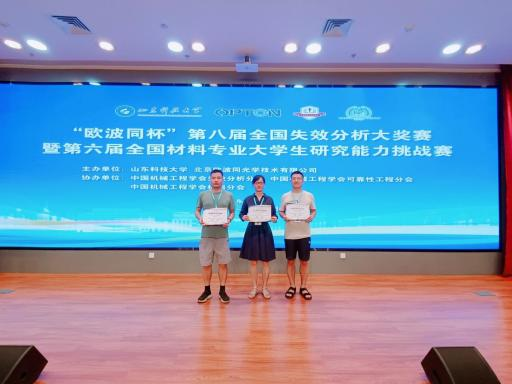 近日,第八届“欧波同杯”全国失效分析大奖赛在山东科技大学圆满落幕。本次比赛由山东科技大学和北京欧波同光学技术有限公司共同主办,中国机械工程学会失效分析分会、可靠性工程分会、材料分会协办。本届大奖赛有168个参赛作品,600余名代表参加此次比赛,通过激烈角逐,我院2个参赛作品《布袋除尘设备双相不锈钢筒体破裂失效分析及改进方案》《电动葫芦卷筒失效分析及改进方案》分别获得全国一等奖、二等奖。