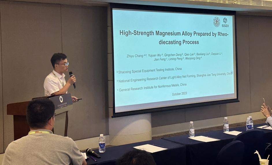 近日,绍兴特检院受邀参加在天津召开的“第七届中挪轻合金及新能源国际研讨会”(CNS 2023),博士常治宇在会上作了题为《High-Strength Magnesium Alloy Prepared by Rheo-diecasting Process》的学术报告。