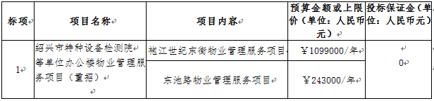 绍兴市特种设备检测院等单位办公楼物业管理服务项目(重招)招标公告